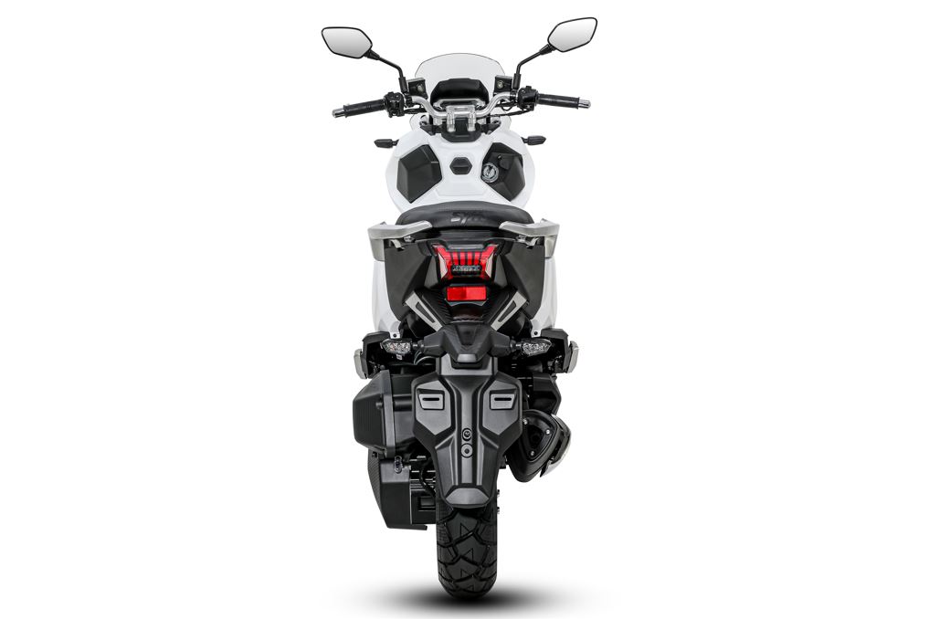 Inspirado en el espíritu de la aventura, el ADX 125 es un scooter que combina las capacidades y el rendimiento de una moto de aventuras con el confort, la comodidad y la capacidad de un scooter de gran cilindrada. Su diseño deportivo muestra sus elementos de potencia, velocidad y estilo. Con el amortiguador monoamortiguador, los neumáticos y la posición de conducción, el ADX se puede manejar tanto por carreteras Off Road como por asfalto. Su diseño destaca por unas líneas afiladas y deportivas, sus acabados hablan claramente de la excelente calidad y su equipamiento hace que cualquier viaje sea divertido y lleno de aventura. Gracias a sus increíbles prestaciones, el nuevo scooter 125cc proporciona una conducción ligera y ágil. El scooter de 125cc es más que un scooter de ciudad, convierte cada viaje en una experiencia única.