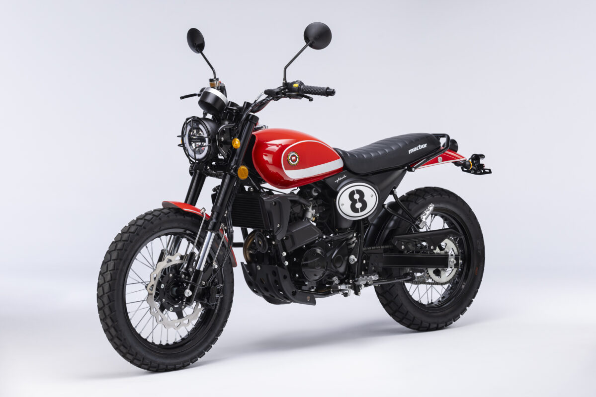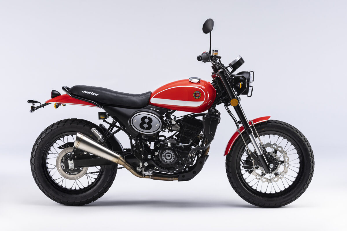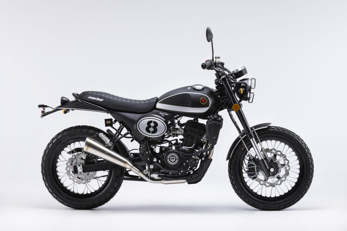 Incorpora un nuevo motor refrigerado por agua, iluminación Full LED, pantalla LCD, un llamativo protector del faro delantero, un tapizado de sillín de gran calidad con el escudo Macbor grabado en él, además de contar con monoamortiguador trasero con sistema de bieletas y frenada combinada CBS.